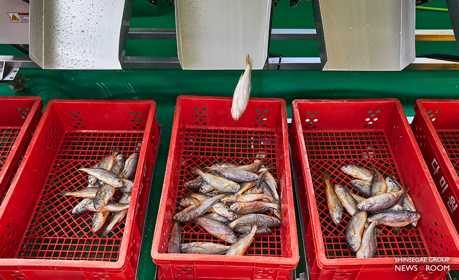 크기와 무게를 기준으로 6가지로 분류하며, 선별기기를 이용해 균일한 선별 작업을 진행한다. 통상 참조기는 사이즈가 클수록 살이 많고 고소하며 육질이 부드러워 고객 선호도가 높다. 25cm 이상 자란 것을 최상급으로 취급하고 있다.