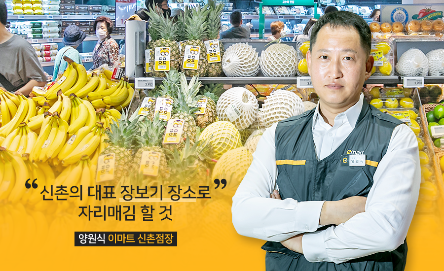 양원식 이마트 신촌점장은 “이마트만의 차별화된 신선식품 경쟁력을 신촌 지역에 선보이게 됐다”며 “신촌 지역의 대표 장보기 장소로 자리매김할 것”이라고 말했다. 실제로 이마트는 신촌점의 그로서리 매장을 1,570㎡로 구성했다. 전체 면적(1,884㎡)의 83%를 차지한다.