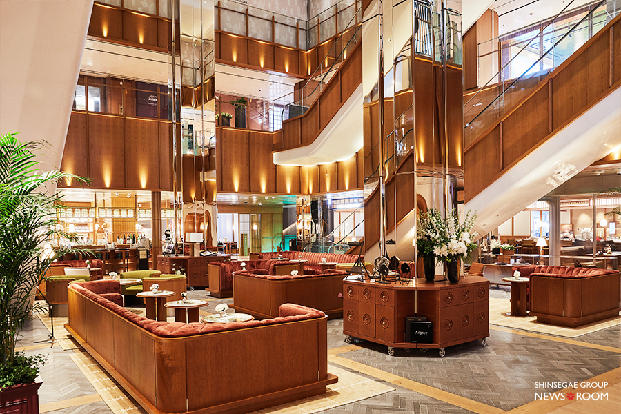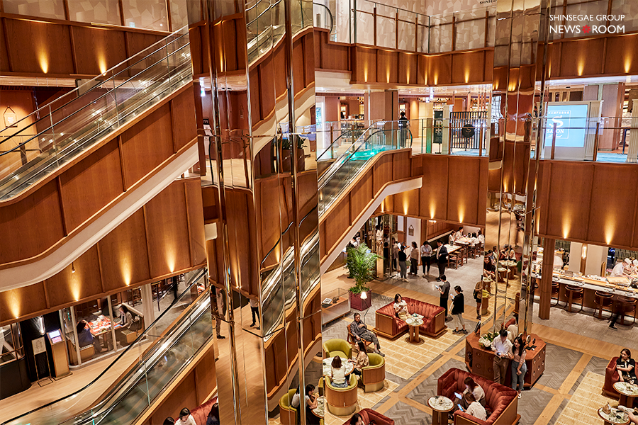 귓가에 흐르는 피아노 소리, 곳곳 자리 잡은 예술 작품, 널찍하고 푹신한 소파에 은은한 조명까지. 짐작을 가뿐히 뛰어넘는 풍경이다. 특급 호텔 로비와 진배없다. 천장은 3층 높이로 뻥 뚫려 실내인데도 개방감이 시원하다. 하우스 오브 신세계의 중심이기도 한 아트리움은 리모델링 이전과 비교해 2배 이상 커졌다.