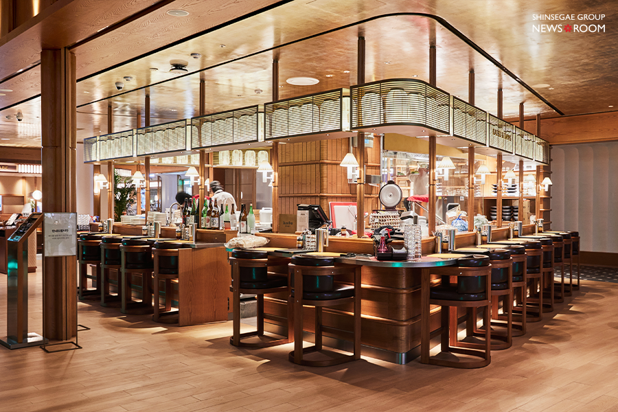 빽빽이 줄지은 테이블 대신 오마카세 식당에 온 듯한 카운터 테이블과 비즈니스 미팅도 가능한 개별 다이닝룸, 널찍한 식사 자리가 자리한 덕분이다. 신세계 F&B 2팀 조창희 팀장은 “옆자리 대화가 쉽게 들리지 않도록 설계했다”고 귀띔했다.