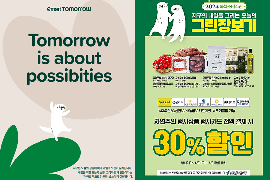 먼저 이마트는 친환경 브랜드인 ‘자연주의’ 그린 장보기 프로모션을 준비했다. 6월 27(목)까지 행사 카드 결제 시 친환경 농산물을 30% 할인해 고객의 친환경 소비를 돕는다.