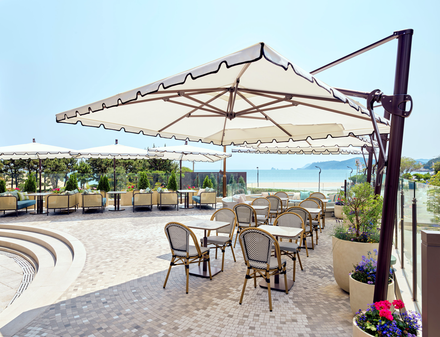 투숙객을 비롯한 모든 고객들에게 즐거운 미식의 경험을 선사할 이 곳은 총 32석으로 탁 트인 개방감과 조망을 고려하여 여유롭게 좌석을 배치하였다. 해운대의 푸른 바다와 해송의 짙은 녹음을 한 눈에 바라볼 수 있을 뿐만 아니라 파이어 피트(Fire Pit)를 중심으로 구성된 원형의 선큰 좌석을 비롯해, 유럽의 카페골목을 옮겨 놓은 듯 이국적이고 로맨틱한 무드의 인테리어로 완성됐다.