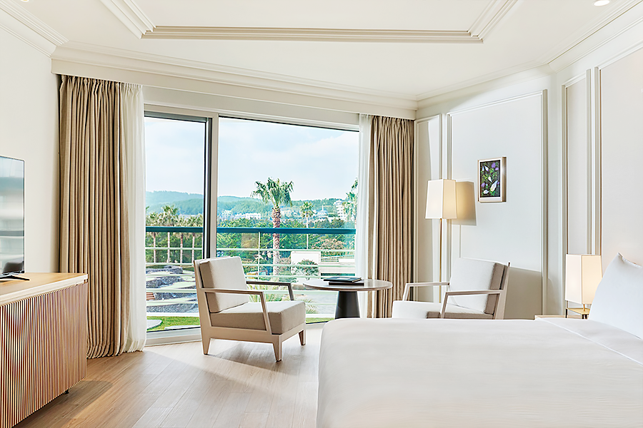 전 객실 스위트로 이루어진 신관 힐 스위트는 추가적으로 힐 스위트 전용 시설인 올데이 프라이빗 라운지 ‘그랑 제이’, 루프탑 ‘헤븐리 풀’, 휴식공간 ‘헤븐리 라운지’ 외에도 GX룸과 사우나 등을 별도로 갖췄으며 공간을 통해 제주의 푸른 바다와 한라산을 조망하며 가장 이상적인 휴식을 선사할 수 있도록 세심하게 디자인되었다.