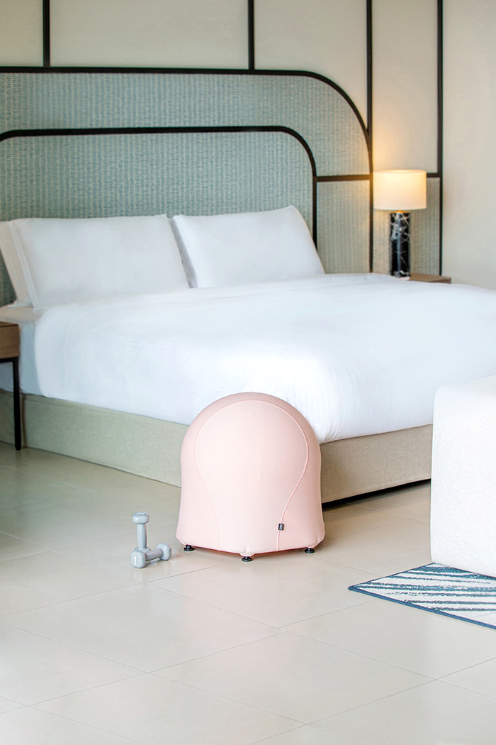 선착순 200 객실에는 홈 필라테스 브랜드 ‘차이(CHA:E)’의 시너지밴드 세트(5만원 상당)를 증정하며, 이번 콜라보레이션을 기념하여 그랜드 조선 제주의 신관 전 객실에는 20만원 상당의 차이 짐볼체어를 비치하여 여행 중에도 건강한 일상의 밸런스를 유지하도록 할 예정이다.