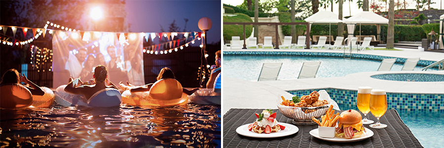 또한 여유롭게 수영을 즐기며 풀사이드 바 잇투오(EAT2O)의 대표 메뉴들로 구성된 ‘잇투오 스낵 세트(베이컨 치즈버거 & 감자튀김, 피자, 핫도그 2개 중 택 1, 음료 2잔)’와 영화를 보며 즐길 수 있는 ‘카바나 미니 스낵바(감자칩 2개, 캔 와인 3개)’도 함께 제공된다.