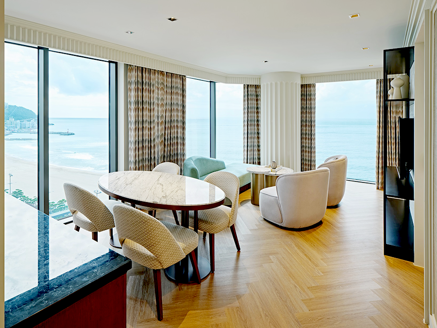 그랜드 조선 부산은 해운대 해수욕장 입구에 위치해 해변과 해운대 중심 상권을 모두 즐길 수 있으며, 탁 트인 해운대 바다전망의 객실과 부대시설은 일상의 피로를 풀어주고 여행에 즐거움을 더하기에 충분하다. 또한, 하이엔드 오디오 상영관 ‘오르페오’, 어린이 영어 멤버십 클럽 ‘프로맘 킨더’, 스파 ‘오셀라스’, 갤러리 ‘가나아트’, 아트 에디션 스토어 ‘에디션 알리앙스’ 등의 다양한 엔터테인먼트 컨텐츠로 프리미엄 라이프 스타일을 즐길 수 있다.
