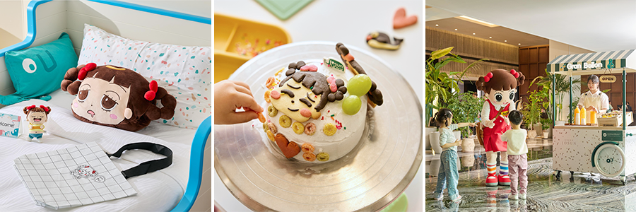 먼저 객실 패키지 ‘패밀리 스테이케이션 위드 안녕 자두야’는 아이와 함께 편안하게 투숙할 수 있는 키즈 디럭스 객실에서의 1박과 자두 낮잠 쿠션, 꿀잠 키링, 리유저블백으로 구성된 MD 3종 세트를 투숙당 1회 제공한다.