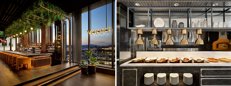 루프탑 바 ‘부스트(Voost)’는 생동감 넘치는 에너지와 풍성한 일상의 경험을 제안하는 감각적인 바이자 그래비티만의 모던 허브 공간이다. 보태니컬한 무드 속 모던하고 이국적인 인테리어와 함께, 스피크이지 콘셉트를 바탕으로 특별한 무드를 연출한다. 실내 바와 아늑한 홀 외에도 야외 가든 테라스와 글래스 하우스를 갖춰, 도심 속 오아시스를 만난듯한 기분을 느낄 수 있다.