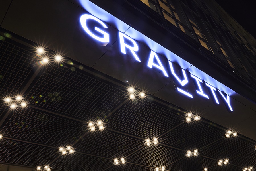 ‘중력’이란 단어에서 느낄 수 있듯, 그래비티는 사람을 끌어당기는 힘이자 중심을 의미한다. 그래비티는 전통적인 호텔의 기능에서 나아가 지역민들의 삶의 허브가 되고 지역 커뮤니티의 중심이 되고자 하는 포부를 담았다. 중력처럼 에너지에 이끌려 공간에서 자유롭게 삶을 즐길 수 있도록 했다. 끌어당김과 구심점. 이러한 핵심 의미를 담으면서도 여러 문화권에서 부정적 연상이 되지 않는 단어를 찾기 위해 다양한 과정을 거쳤다.