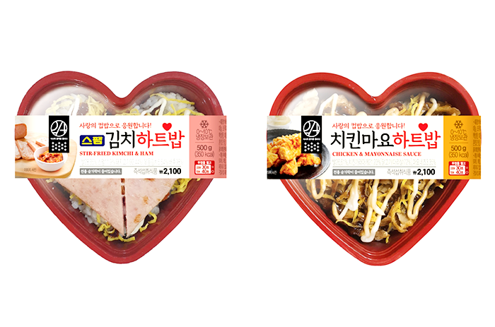 이마트24가 응원 메시지를 담은 하트 주먹밥 2종(이하 하트밥)을 17일 출시한다. 이마트24는 고객에게 긍정의 기운을 전달하고자 하트 모양 용기에 인기 주먹밥을 넣은 하트밥을 기획했다.