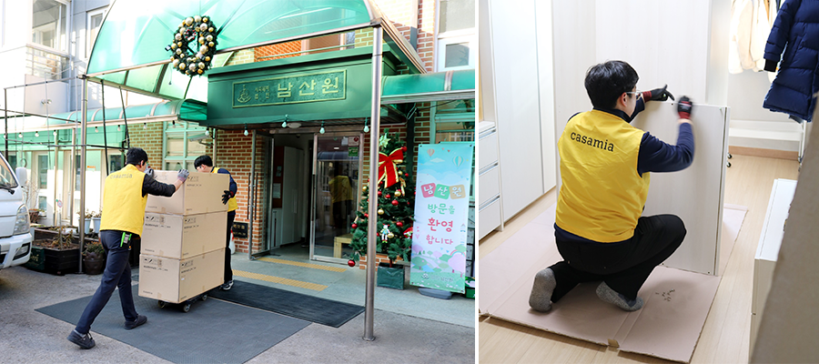 책상 · 책장 · 의자 등 학업 필수 가구들을 비롯해 침대 · 테이블 등 일상생활에 필요한 가구는 물론, 아이들과 보호자들이 편히 쉴 수 있는 공간 조성을 위한 소파 등의 휴식용 가구를 함께 전달했다.