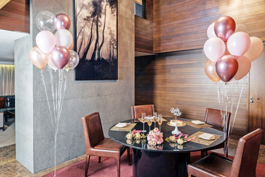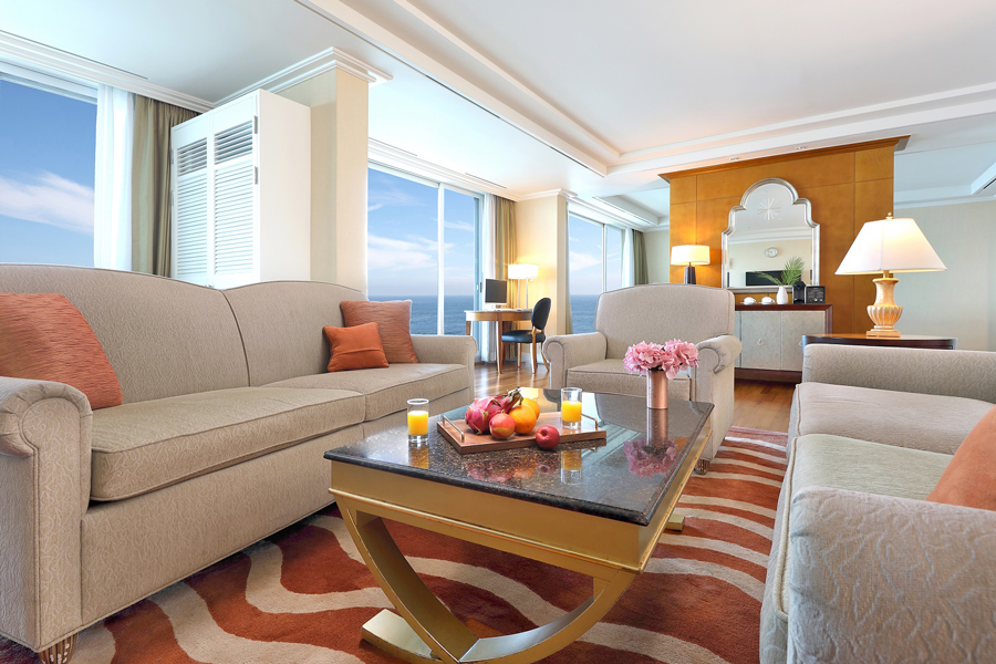 먼저, 거실 공간은 전문 데커레이션 업체와 상담을 통해 원하는 파티 테마에 맞는 컬러의 풍선과 선물 상자로 꾸며진다. 호텔 직영 플라워팀의 세심한 손길로 만든 생화 센터피스가 다이닝 테이블을 화사하게 장식하며, 호텔 셰프가 최상급 식재료로 정성스럽게 준비한 홈메이드 큐어드 훈제연어, 트러플 프렌치 프라이, 프라이드 치킨, 모둠 유럽 치즈 등 룸서비스 메뉴 4종이 다이닝 테이블을 가득 채운다. 여기에 파티에 빠질 수 없는 케이크와 스파클링 와인 2병으로 구성한 웰컴 어메니티가 더해져 포토제닉한 공간과 맛있는 음식으로 완벽한 파티 분위기를 선사한다. 뿐만 아니라 편안한 휴식을 위한 간이침대 2개를 무료로 제공하며, 레스토랑에서의 4인 조식을 포함한다. 호텔의 29층에 위치한 198평방미터 크기의 ‘프레지덴셜 스위트’, 27층과 28층에 위치한 155 평방미터 크기의 ‘디플로매트 스위트’는 전면 유리창을 통해 아름다운 바다와 광안대교를 한눈에 조망할 수 있으며, 킹사이즈 베드 1개가 있는 침실, 바다를 마주하고 있는 욕실, 독립된 다이닝 공간과 사무 공간이 있는 리빙룸을 갖추고 있다.