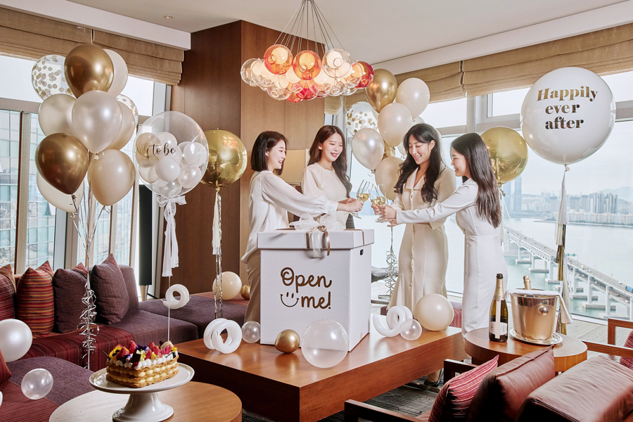 결혼을 앞둔 신부를 축하하기 위해 신부와 친구들이 모여 파티하는 것으로 최근 트렌드인 브라이덜 샤워를 호텔 바다전망 47평형 스위트룸에서 즐길 수 있다. 이번 패키지는 결혼을 하는 예비신부를 위하여 정상가격이 1박에 3백 만원인 플래티늄 스위트 객실을 90만 원에 이용 가능하고 성공적인 파티를 위하여 호텔 플로리스트가 디자인한 핸드메이드 손목 코사지와 화관과 사전 요청 시 축하 현수막을 제작하여 드리고 와인과 과일 치즈 플래터를 룸서비스로 풍성한 혜택을 제공한다.