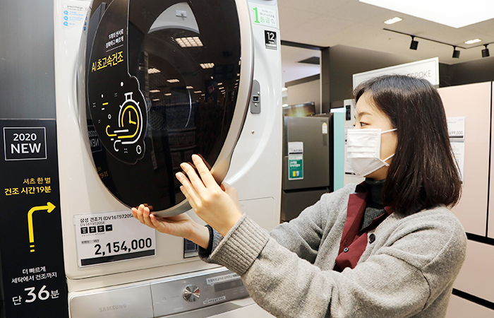이마트의 최근 가전 매출에 따르면, 코로나19가 시작된 1월20일부터 3월19일까지 건조기와 의류관리기 매출이 지난해 동기간 대비 각각 26.6%, 38.5% 뛰었다. 이에 건조기, 의류관리기로 구성된 패브릭케어 분류의 가전(대·소형가전)내 매출 순위가 지난해 6위에서 필수 가전과 기존 트렌드 가전 등을 제치며 올해 2위로 4단계 상승했다. 패브릭케어 가전은 필수 가전인 냉장고, 청소기를 비롯해 지난해 불티나게 팔려나갔던 공기청정기, 에어프라이어 등이 속한 홈케어가전 및 주방소형가전을 모두 제쳤다.