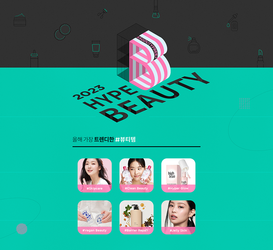 면세업계 뷰티 트렌드를 선도하는 신세계면세점이 준비한 ‘2023 서머 하입 뷰티’ 프로모션은 올해 상반기 주목 받은 뷰티 키워드별 추천 상품을 선보이며, 총 177개 브랜드 대상 최대 80%의 할인 혜택을 제공한다.