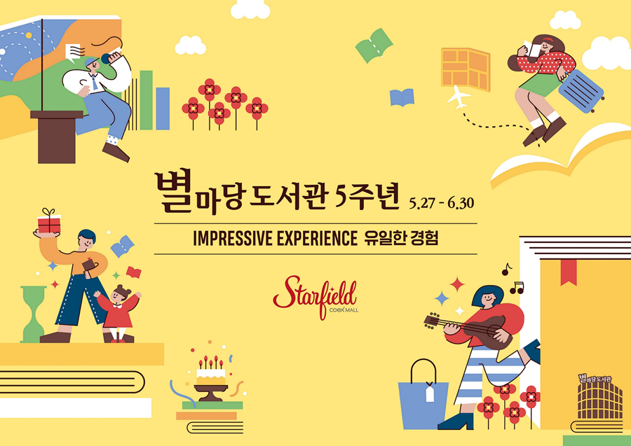 이처럼 고객들의 일상 속에 스며든 별마당 도서관은 5주년을 기념해 내달 6월 30일(목)까지 ‘유일한 경험’ 행사를 진행, 그 특별한 이야기를 전한다. 이번 행사는 개관 5주년을 맞아 별마당 도서관을 처음 만났던 순간의 인상 깊었던 경험과 함께 별마당 도서관에서만 만나볼 수 있는 유일무이한 영감과 새로운 감동을 선사할 예정이다.
