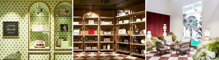 엄선한 제품들은 다양한 방식으로 소개된다. 주목받고 있는 라이프스타일을 반영한 신 키트(scene kit) 존은 최신 주거 트렌드를 손쉽게 구현할 수 있도록 다양한 소품들을 하나의 패키지로 제안한다.