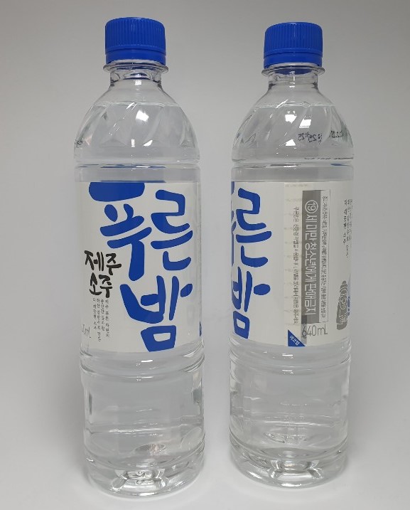 제주소주는 국내 최초로 최우수등급 포장재 라벨링 특허를 받은 ‘남양매직’과 협업을 통해 ‘푸른밤 640ml 페트 용기’를 최우수등급 기준에 충족하도록 개선했다.
