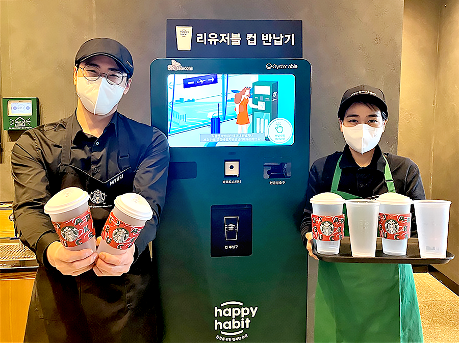 올해 6월에는 환경부와 제주특별자치도, 한국공항공사, SK텔레콤, CJ대한통운, 행복커넥트 등 7개 민관 기관이 함께 하는 ‘1회용컵 없는 청정 제주 조성’을 위한 시범사업에 대한 업무 협약을 진행하고, 7월에 제주지역 4개 매장에서 다회용컵 시범 사업을 시작했다.
