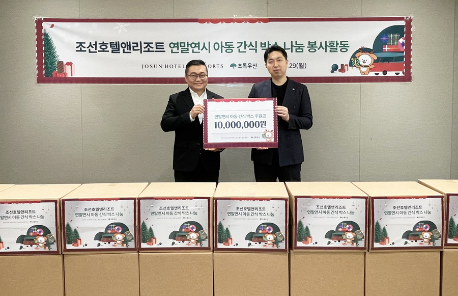 조선호텔앤리조트가 연말연시 시즌을 맞이해 12월 29일(월), 서울시 중구 소공동 본사에서 서울, 경기 지역 내의 아동복지시설에 소외계층 어린이들을 위한 간식 박스를 제작 및 전달하는 사회공헌활동을 펼쳤다.