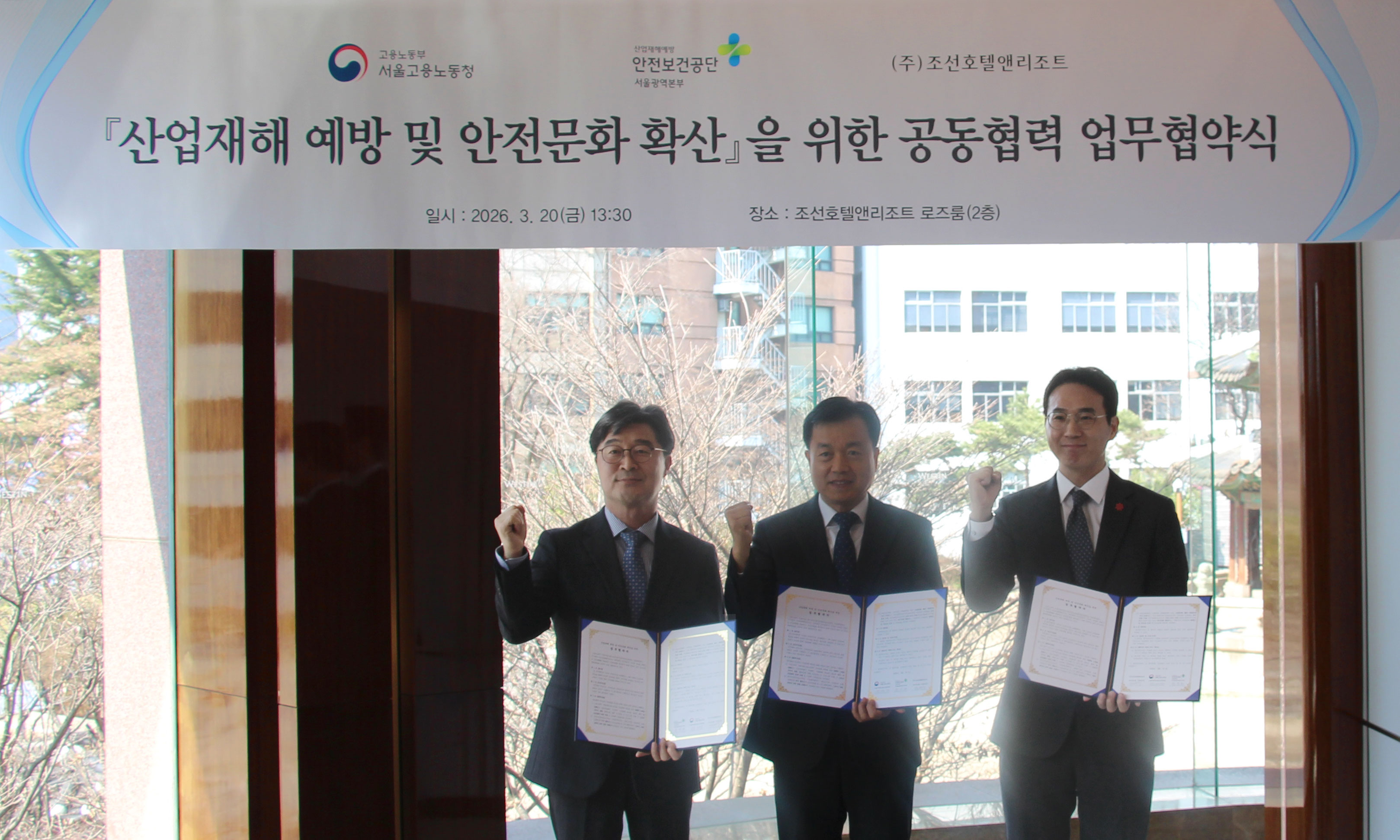 MEDIA 글자 크기 보통 크게 아주 크게 공유하기 페이스북 X 카카오톡 링크 복사 링크 복사됨 도구 보기 이미지 다운로드 조선호텔앤리조트, 안전문화 확산 위한 서울지방고용노동청·안전보건공단과 업무협약 체결 2026.03.23 조선호텔앤리조트