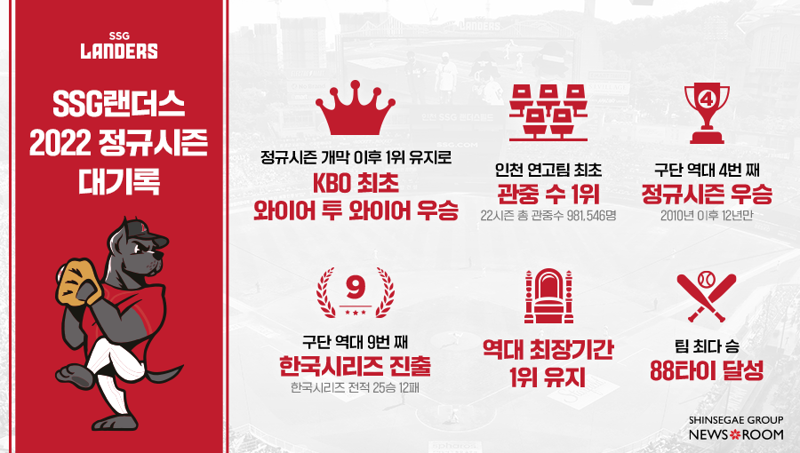 SSG랜더스가 2022년 KBO리그 정규시즌에서 한국 프로야구사(史)에 새긴 기록들이다. ‘세상에 없던 프로야구단’을 선포하며 KBO리그에 상륙한 지 불과 2년 만의 일이다.