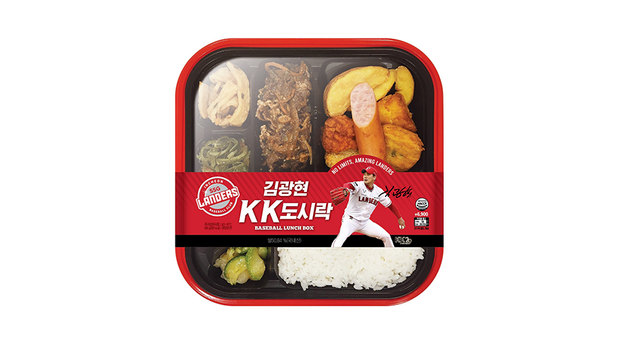 김광현 KK도시락은 김광현 선수 이니셜 ‘KK’를 상품명 김광현 선수의 사진과 사인으로 패키지가 디자인되어 있다. 특히 김광현 선수가 실제로 좋아하는 반찬들로 구성한 것이 특징이다. 도시락은 소불고기, 밑반찬 3종(호박볶음, 어묵야채볶음, 미역줄기볶음), 튀김류(치킨가라아게, 치킨너겟, 해물완자, 웨지감자, 꼬마돈까스) 등 10가지 반찬으로 푸짐하게 구성된다. 가격은 6900원이다.