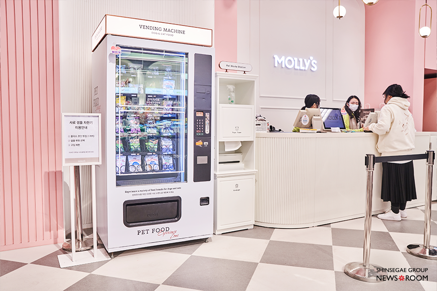 매장을 둘러보고 결제를 마쳤다면 사료 샘플 자판기를 체험해보시길 권합니다. 이 자판기에는 24개 브랜드의 사료 샘플이 마련되어 있습니다. 결제 후에 제공되는 몰리스 코인으로 고객이 원하는 사료 샘플을 선택하여 뽑아가는 재미를 경험할 수 있습니다.