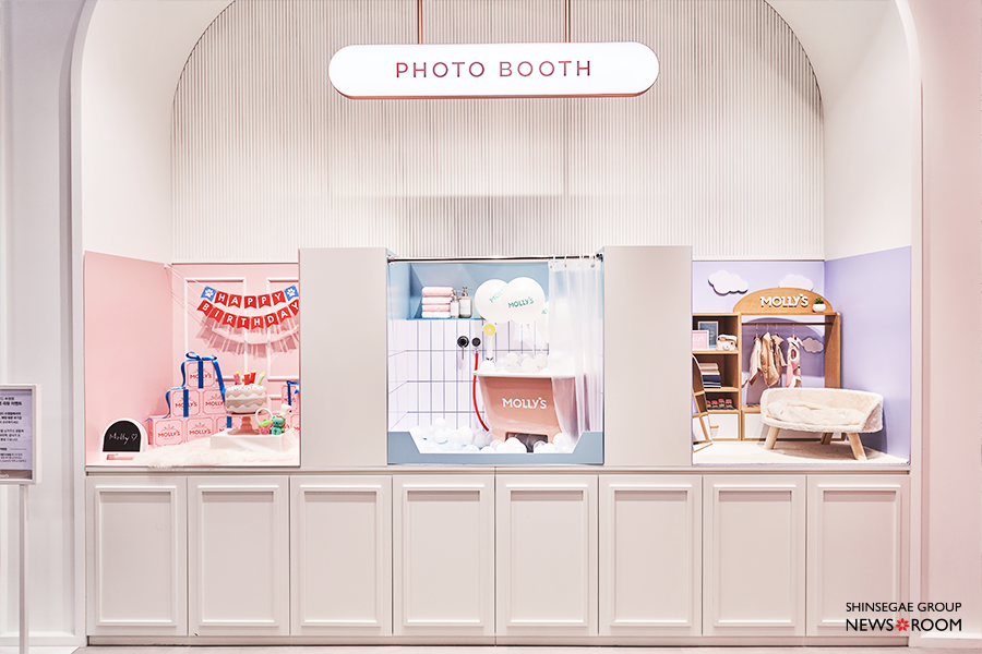 셀카존은 몰리스의 시그니처 컬러인 핑크 부스 안에서 반려동물과 반려인이 함께 사진을 찍을 수있도록 만들었습니다.