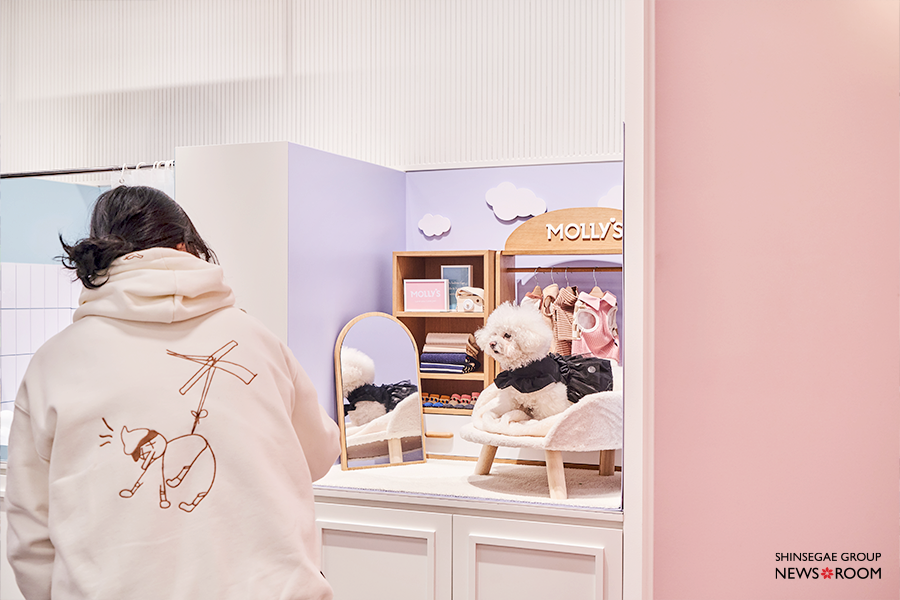 몰리스 스타필드 수원점에서 가장 먼저 눈에 띄는 건 상품 구성입니다. 모든 상품들을 최신 트렌드에 맞게 구성했습니다. 매장 입구부터 펼쳐지는 ‘패션 스트리트’ 존에는 25개 브랜드의 1,000개가 넘는 펫 의류들이 전시됐으며, 옷을 입혀보고 사이즈를 확인할 수 있는 피팅룸도 마련됐습니다.