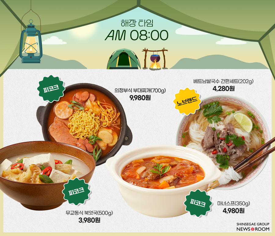다음 날 아침, 쌀쌀한 공기에 뜨끈한 국물이 절로 당긴다. 흔히 먹는 라면도 좋지만, 좀 더 특별한 아침 식사를 즐기고 싶다면 밀키트가 제격이다. 해장에 좋은 북엇국부터 간편하게 즐기는 쌀국수, 캠핑 인기메뉴 부대찌개까지. 필요한 건 냄비 하나. 이마트 밀키트와 함께 떠나기 전까지 캠핑의 낭만을 이어가 보자.