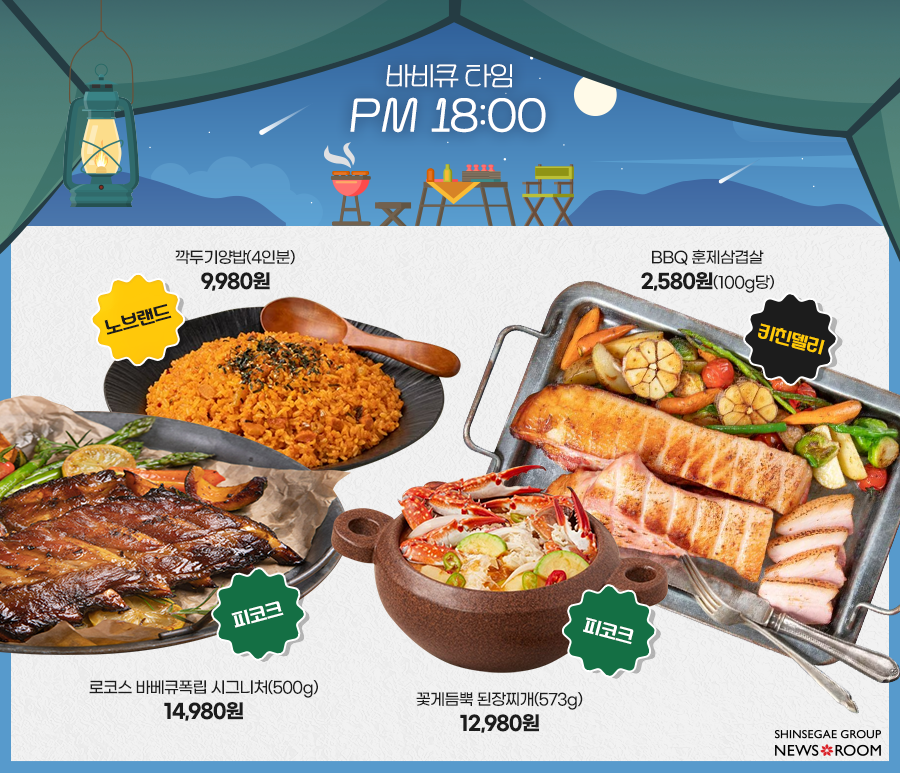 어둑어둑 해가 저물 즈음 캠핑의 하이라이트 바비큐 파티 시간이 찾아온다. 캠핑의 꽃은 뭐니 뭐니 해도 숯불에 구워 먹는 고기일 것이다. 불을 피우고, 재료를 준비하고, 고기와 곁들일 찌개까지 준비하려면 시간이 꽤 빠듯하다. 하지만 낭만은 포기할 수 없는 법. 이마트 아이템과 함께라면, 누구나 손쉽게 근사한 파티를 즐길 수 있다.