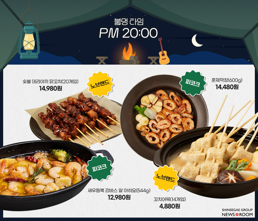 저녁을 먹은 뒤 모닥불에 둘러앉아 ‘불멍’ 타임을 갖는다. 타닥타닥 소리를 내며 타오르는 모닥불은 그저 바라보는 것만으로도 힐링이 된다. 가족과 연인, 친구들과 따뜻한 불을 쬐며 술 한잔 기울이기에도 좋은 분위기다. 이 시간을 더욱 빛내줄 이마트 안주들과 함께 가을밤의 낭만에 취해 보자.