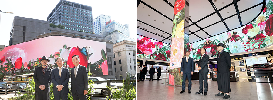 이후 신세계백화점 본관 신세계스퀘어에서는 ‘모란도 2폭 장지(障子)’를 바탕으로 한 ‘모란꽃이 피오니’가 상영됐다. 당당한 모란의 자태와 웅장한 사운드가 어우러져 깊은 감동을 자아냈다.
