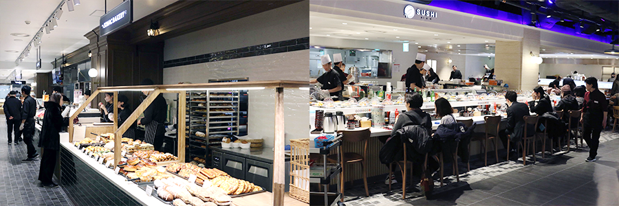 한 층 아래인 지하 1층으로 발길을 옮기면 1,100평 규모의 맛집 거리 ‘고메스트리트’가 펼쳐진다. [※ 델리, 건강식품 3월 오픈 예정]