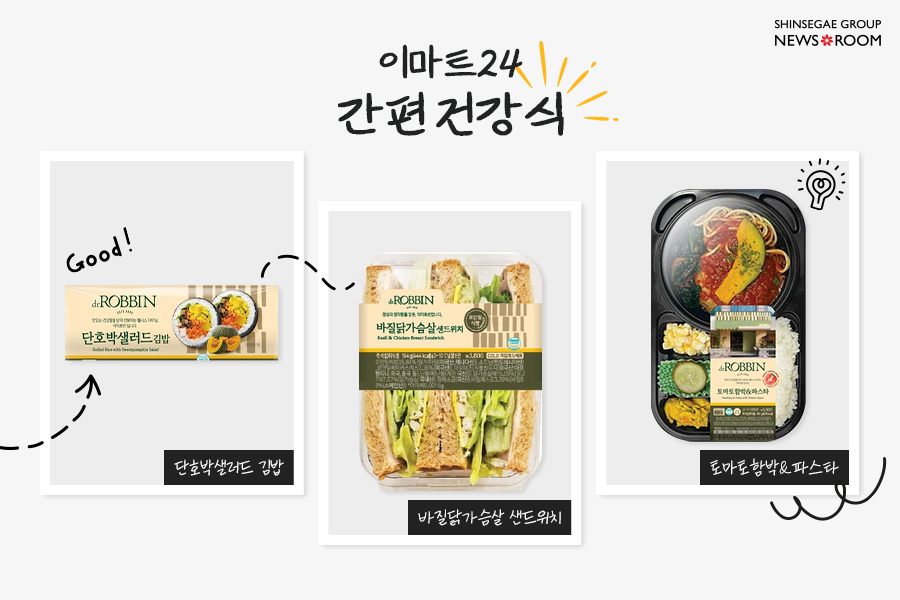 간편식의 대표주자 편의점에서도 건강식이 주요 카테고리로 자리잡았다. 올해 초, 이마트 24는 프리미엄 건강식 브랜드 닥터로빈과 손잡고 세 가지 건강 간편식을 선보였다. 단호박샐러드김밥, 바질닭가슴살샌드위치, 토마토함박&파스타로 건강한 식재료와 균형 잡힌 영양을 모두 고려했다.