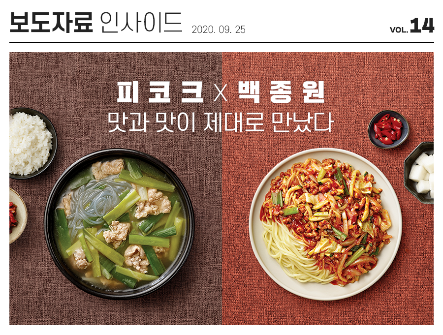 ▶ 피코크와 백종원의 첫 번째 콜라보, ‘맑은 국물 파개장’, ‘매콤 제육 비빔면’ 밀키트 출시