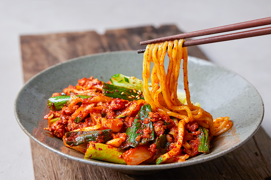 쫄깃한 면과 매콤한 소스가 어우러진 ‘매콤 제육 비빔면’