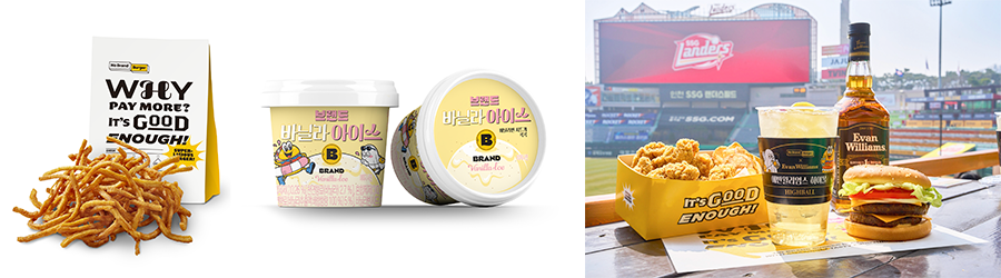 노브랜드 버거 SSG랜더스필드점 전용 메뉴로 선보인 ‘에반 윌리엄스 하이볼’도 ‘야구장에서는 맥주’라는 공식을 깨고 인기를 끌고 있다. 젊은 층 사이에 열풍으로 불고 있는 하이볼 트렌드에 맞춰 선보인 ‘에반 윌리엄스 하이볼’은 일 평균 100잔씩 판매되며 누적 판매량 2000잔을 돌파했으며 주말에는 일 평균 약 200잔이 판매됐다. ‘에반 윌리엄스 하이볼’은 부드럽고 강한 풍미의 에반 윌리엄스 위스키 베이스에 레몬주스를 더해 하이볼 특유의 은은한 단맛과 상큼한 맛 뿐 아니라 청량감을 느낄 수 있어 야구장에서 가볍게 즐기기 좋다.