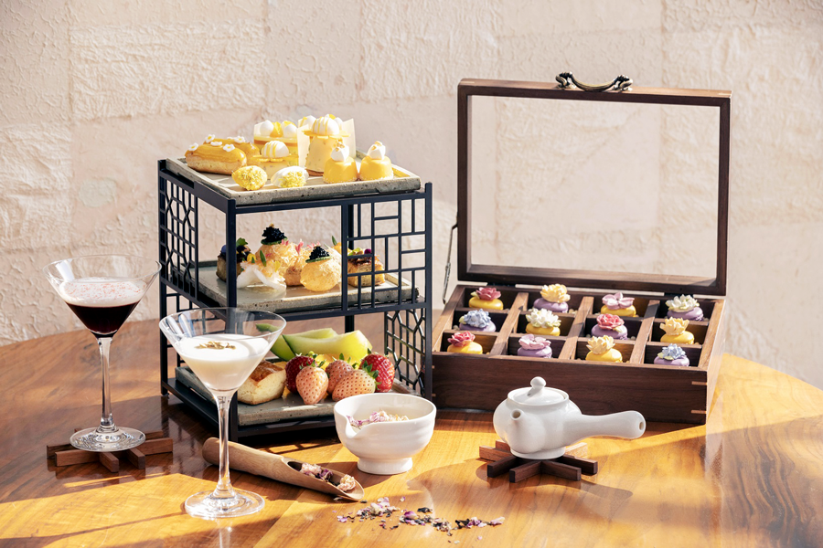 3단 트레이 속에는 노란빛 꽃물을 들인 디저트가 펼쳐진다. 유자 에클레어, 레몬 마들렌, 촉촉함을 더한 패션후르츠 크레무, 망고와 피스타치오의 톡톡 씹히는 식감이 매력적인 케이크 등으로 화려하게 개화한 봄꽃을 표현했다. 꽃잎 모양처럼 펼쳐진 데커레이션은 여심을 저격한다. 배를 든든하게 채워줄 세이버리 메뉴도 준비했다. 오징어 살을 올려 바삭바삭하게 맛볼 수 있는 크래커, 인도식 동그란 튀김볼인 파니푸리, 프렌치토스트 등 호불호 없이 가볍게 즐길 수 있는 아이템들로 채웠다.