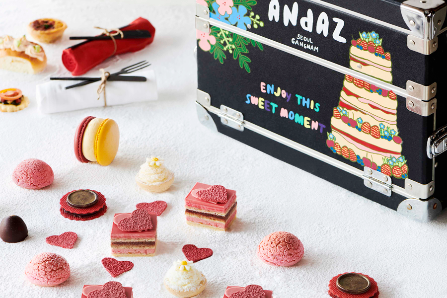 수제 마카롱 전문점 ‘라미벨르’와 협업으로 탄생한 딸기 유자 마카롱을 비롯한 6종의 디저트와 4종의 세이버리 아이템을 안다즈 서울 강남만의 시크릿 박스에 담아, 무제한 커피 또는 차와 함께 제공한다. 호텔 2층에 위치한 조각보 레스토랑 바이츠 앤 와인에서 매일 오전 11시 30분부터 오후 5시까지 이용 가능하다. 가격은 2인 기준 9만원(부가세 포함)이다.