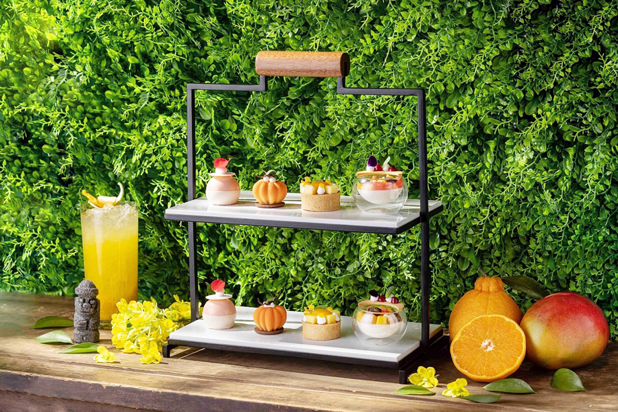 ‘제주 애프터눈 티’는 보기만 해도 봄의 상큼한 에너지가 느껴지는 디저트들이 애프터눈 티 스탠드로 고객에게 제공된다. 티 스탠드에는 맛과 향이 좋기로 소문난 제주의 구좌 당근으로 만든 당근 케이크, 달달한 망고 무스와 아삭한 망고의 과육이 돋보이는 제주 애플 망고 타르트, 새콤달콤한 한라봉·자스민 판나코타, 동그란 리치를 닮은 유채꿀·리치 바바로와즈로 구성되어 고객의 시각과 미각을 모두 사로잡는다.