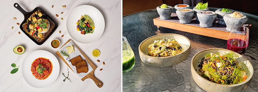 비건 메뉴는 상큼한 다시마 채소수와 제철 모둠 버섯을 청경채와 요리한 버섯덮밥, 미소국, 비건식 반찬 3종, 과일이 반상으로 함께 준비되며, 비건 빵, 두부면으로 조리한 토마토 파스타 등을 추가로 주문할 수 있다. 해당 웰빙&비건 조식 세트는 객실 내 세라젬 안마의자가 셋팅된 힐니스 패키지를 이용하여 객실 패키지로 만나볼 수 있다.
