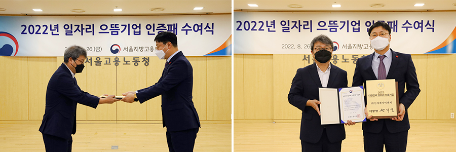 고용노동부가 주관하는 ‘대한민국 일자리 으뜸기업’은 양질의 일자리 창출에 앞장서고, 일하기 좋은 환경을 구축한 우수기업을 선정해 인증하는 제도다. 국민 추천 등을 통해 후보기업을 발굴하고, 각 기업별 고용 증가율, 이직율 등을 분석해 매년 100개 기업을 선정하고 있다.