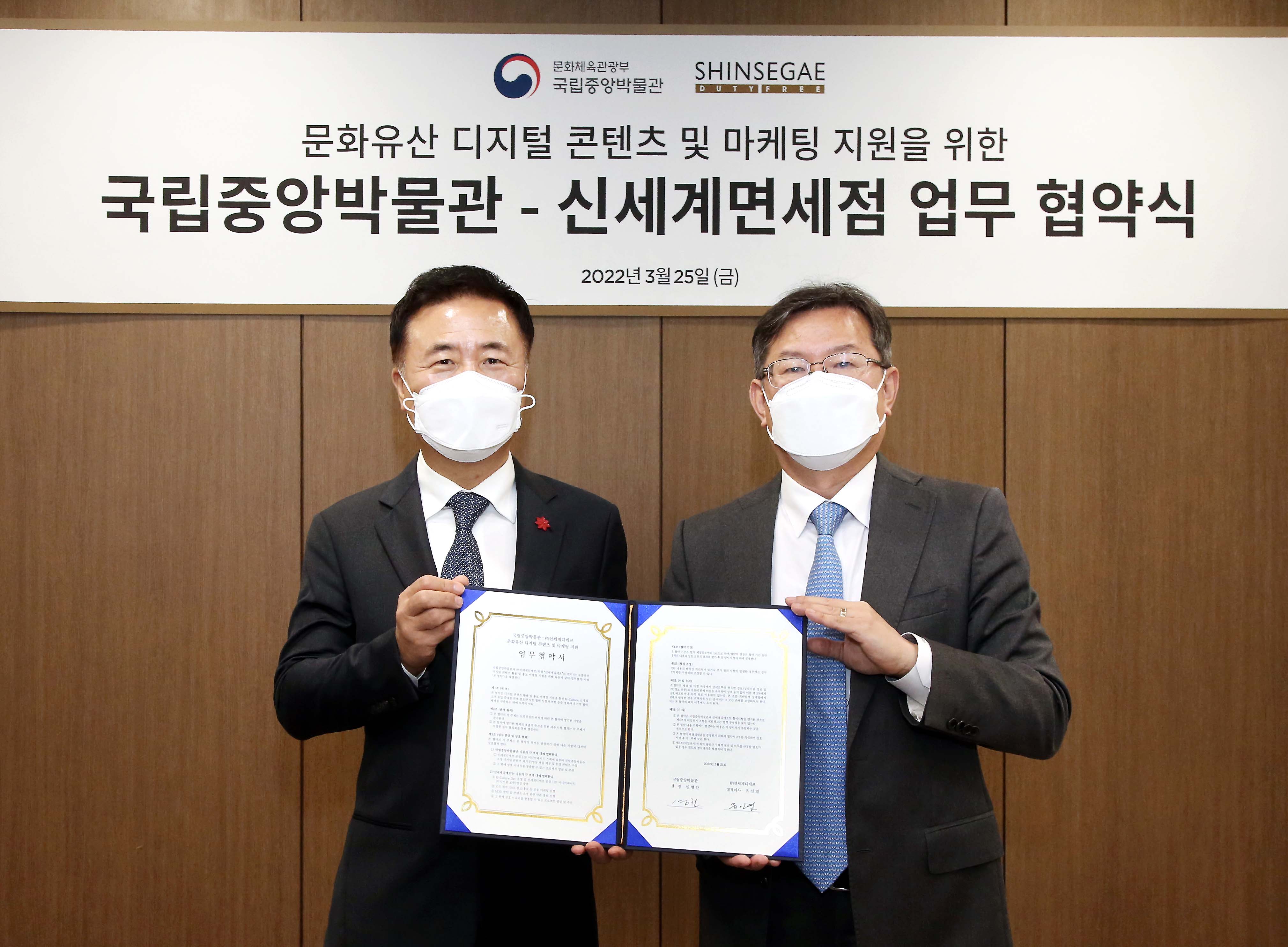 MEDIA 글자 크기 보통 크게 아주 크게 공유하기 페이스북 X 카카오톡 링크 복사 링크 복사됨 도구 보기 이미지 다운로드 신세계디에프, 국립중앙박물관과 K-컬쳐 활성화 위한 협약 체결 2022.03.28 신세계디에프