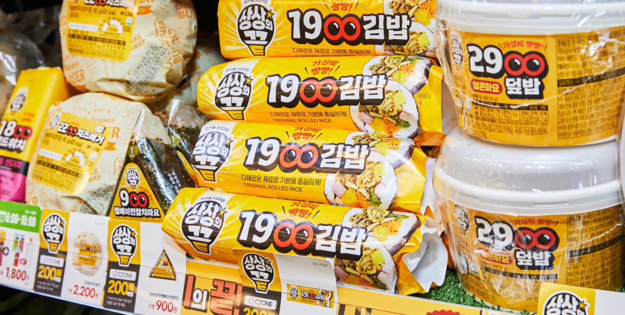 가장 화제를 모은 건 ‘1900김밥’. 10년 전 가격을 그대로 되살린 이 상품은 출시 직후, 편의점 스테디셀러인 참치마요김밥을 밀어내고 단숨에 카테고리 1위에 올랐다. 그 뒤를 이어, 각 카테고리에서 1등을 찍은 ‘상상의끝’ 상품만 벌써 여섯 가지. 물가에 지친 소비자들에게 이보다 확실한 해답은 없었다.