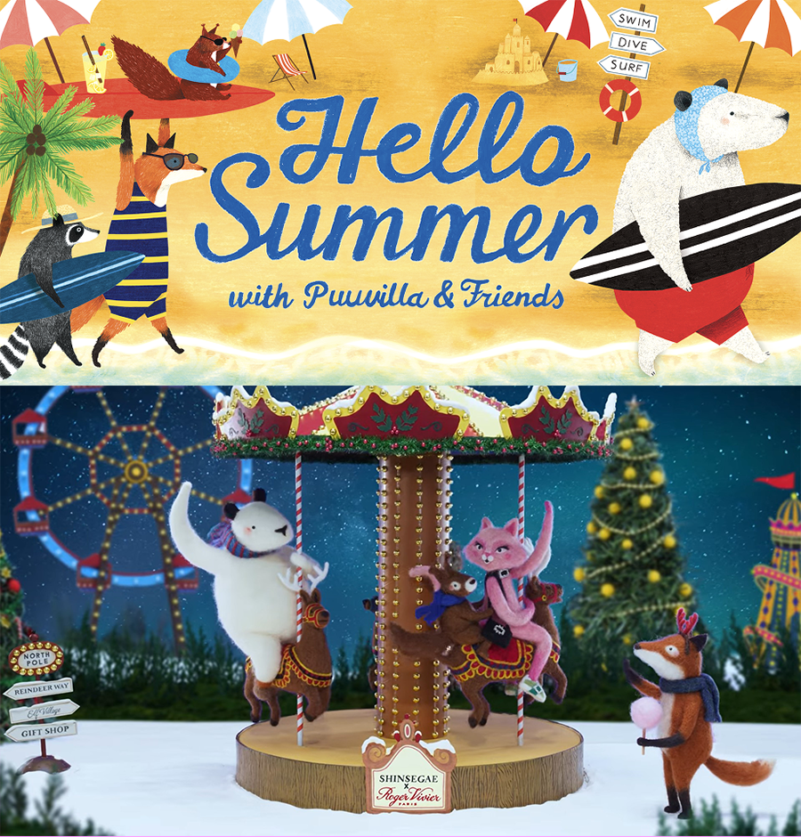 푸빌라는 탄생 이후에 다양한 콜라보를 진행하며 IP를 강화했습니다. 겨울에 태어난 푸빌라가 ‘20년에는 처음으로 여름에 등장하기도 했고, ‘21년에는 로저 비비에 콜라보레이션으로 한정판 운동화, 핸드백, 스노우볼 굿즈로 재탄생했습니다. 올해는 신세계백화점 VIP 대상으로만 굿즈 한정 판매를 했습니다.