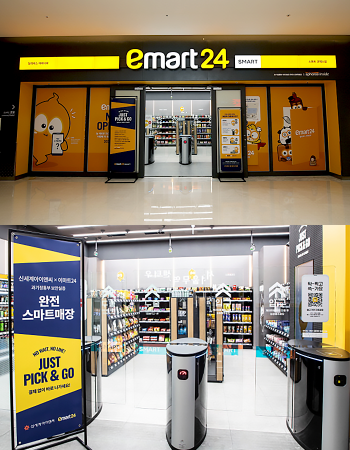 누구나 이용 가능한 이마트24 스마트 코엑스점에는 인공지능(AI), 컴퓨터비전, 센서퓨전, 음성인식, 클라우드POS 등 신세계아이앤씨의 리테일테크가 총 동원돼 자동결제 기술이 구현됐다. 고객들은 매장 앞에 설치된 키오스크를 통해 본인 신용(체크)카드로 인증 및 출입 QR코드를 받아 입장이 가능하며, 매장에서 원하는 상품을 들고 나오기만 하면 최초 인증된 신용(체크)카드로 자동 결제가 진행된다.