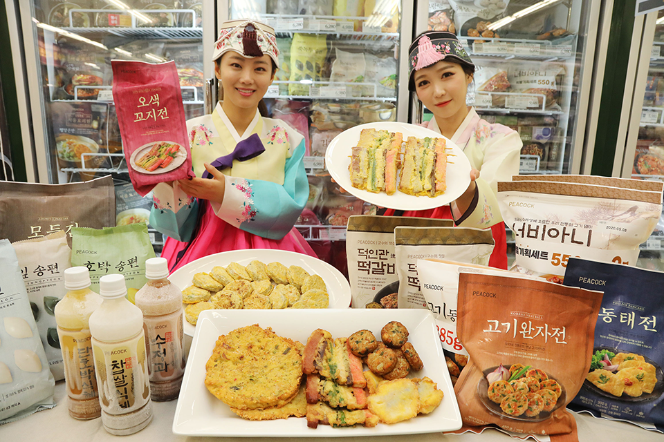 대표 상품으로는 ‘피코크 모싯잎/흰 송편(600g, 6,280원)’, ‘피코크 순희네빈대떡(400g, 7,480원)’, ‘피코크 모듬전(470g, 8,880원)’, ‘피코크 고기동그랑땡 기획(385g*2, 6,980원)’, ‘피코크 100% 국내산 당면(400g, 4,980원)’ 등을 판매한다.