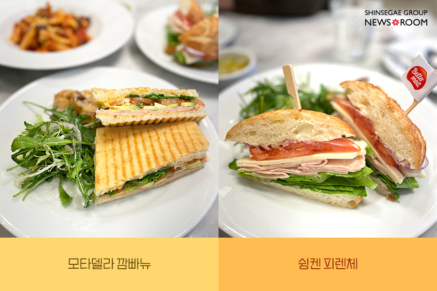 특히 모타델라 깜빠뉴와 슁켄 피렌체는 신세계푸드의 베테랑 셰프들과 연구진이 모여 만든 식물성 소스, 스프레드를 사용하는데요. 신선한 야채를 비롯한 식재료들과 잘 어우러져 가벼우면서도 식욕을 자극하는 풍부한 맛을 내죠. 비건 음식에 대한 편견을 완전히 깨버린 샌드위치였습니다.